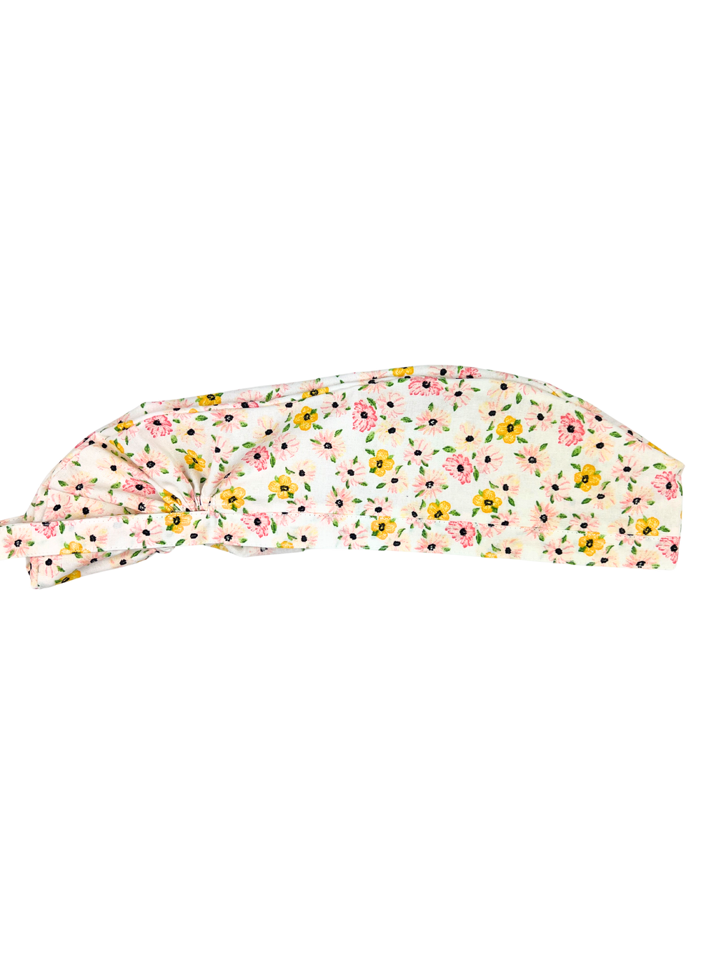 Yellow and Pink Floral Women's Long Hair Scrub Cap